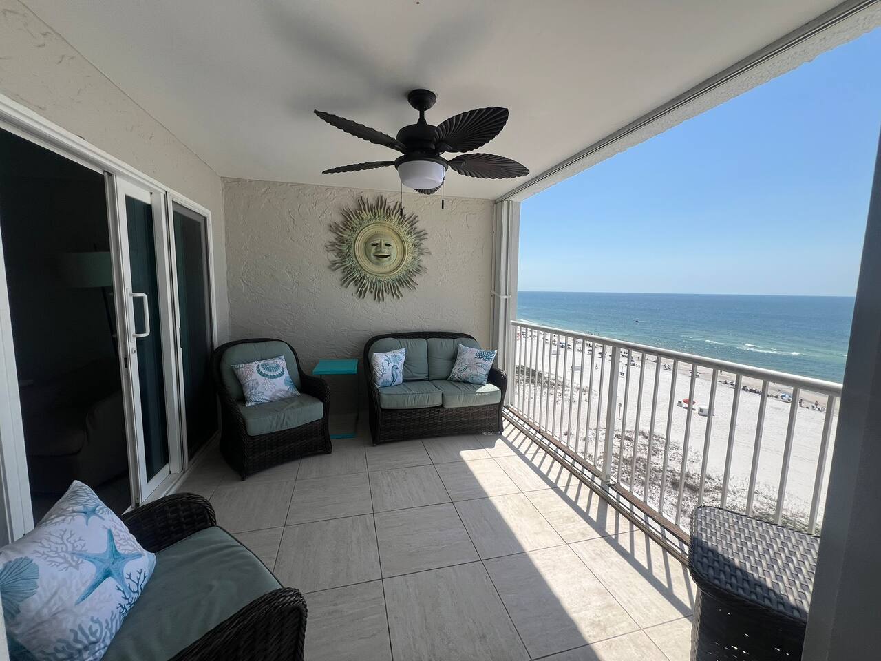 This 8th-floor oceanfront condo offers sweeping Gulf views from your private balcony, just steps from the beach. Perfect for families and groups, enjoy a relaxed stay with plenty of space, a fully equipped kitchen, cozy living area, and access to the pool — everything you need for an unforgettable beach vacation.